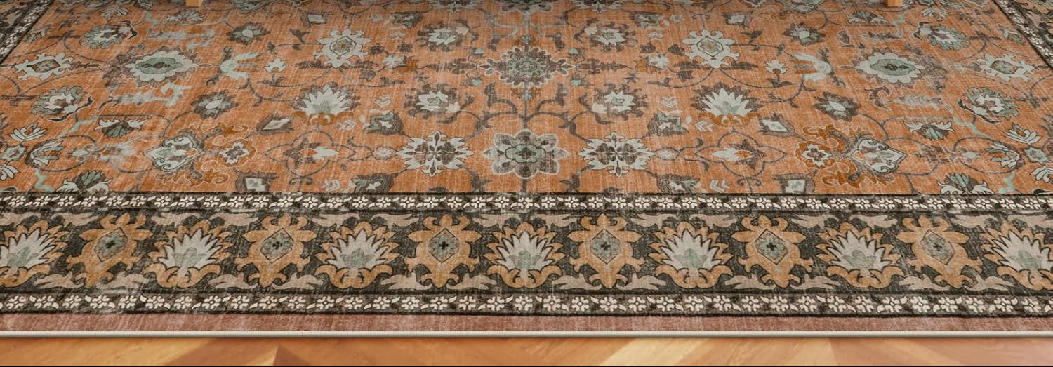 Non-Slip Retro Floral Carpet Print Distressed Accent Rugs for Dining Room Home Office