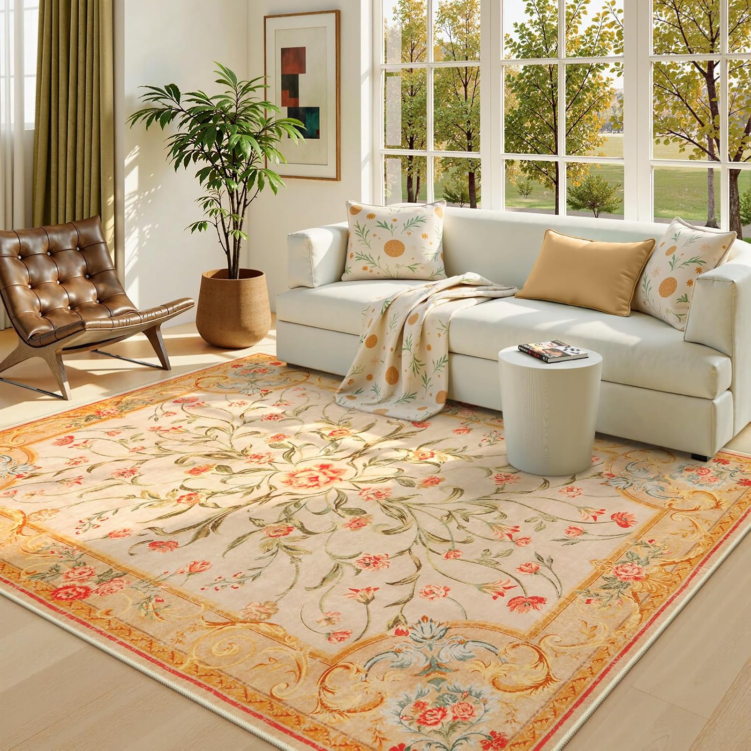 French style Utral-Thin Bedroom Rug Anti Skid, Soft Low Pile Indoor Carpet for Nursery Office Dining Room Playroom