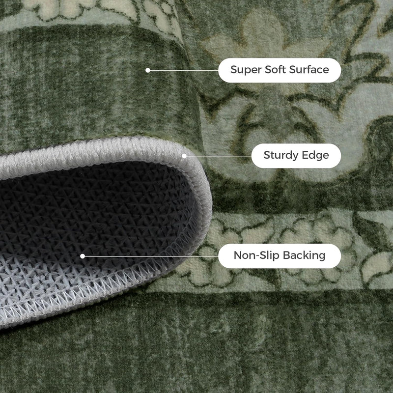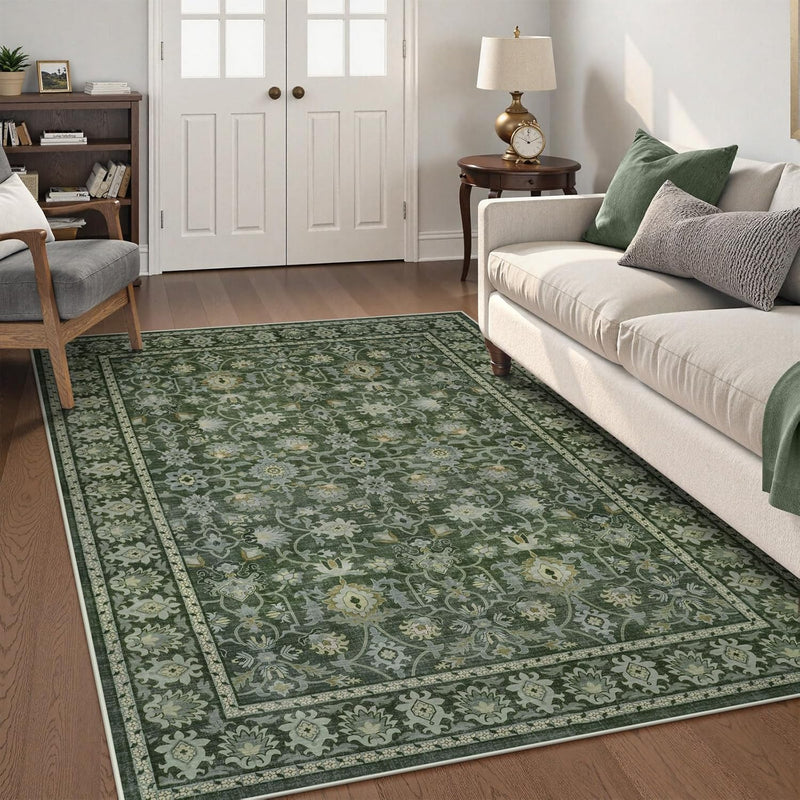 LIVEBOX Washable Area Rug 5x7- Large Green Boho Living Room Rug Vintage Rugs for Bedroom, Lightweight Retro Carpet Floral Accent Rugs for Dining Room High Traffic Area