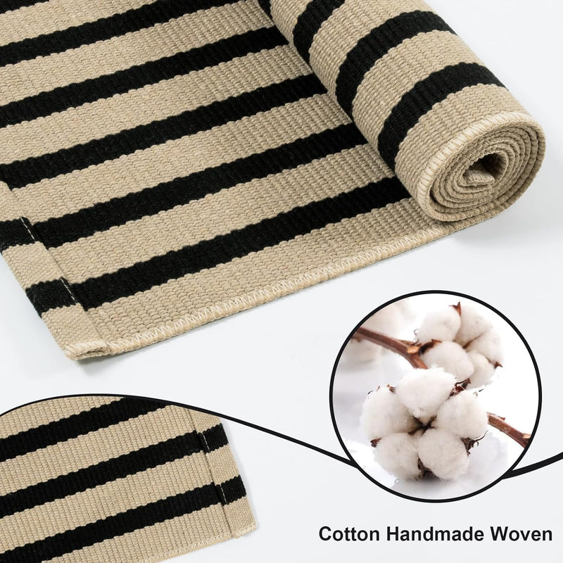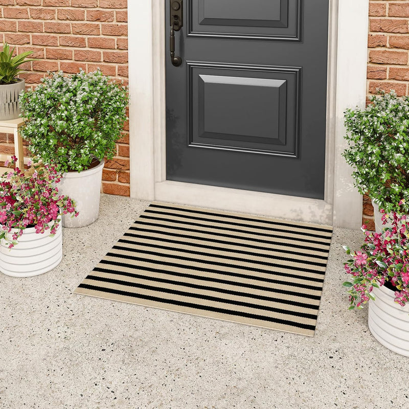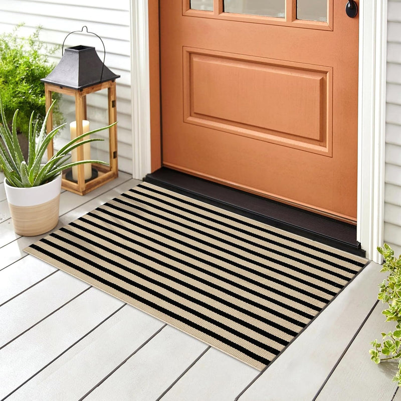 Tiveney Door Mat Cotton Woven Washable Front Porch Rugs, Farmhouse Reversible Layered Welcome Mat