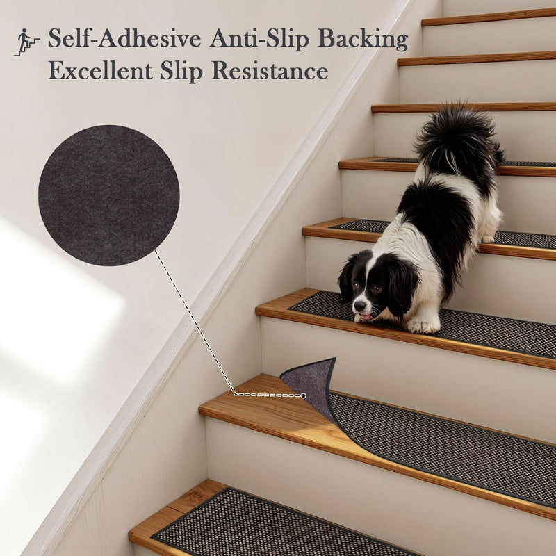 Tiveney Stair Treads Non Slip for Wooden Steps, Machine Washable, Self-Adhesive Anti-Slip Backing Carpet for Stairs