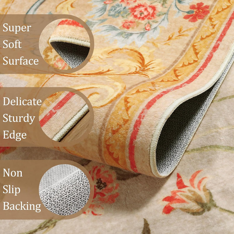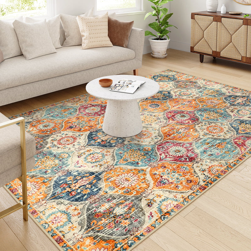 LIVEBOX Washable Rugs for Living Room Bedroom, Non-Slip Boho Indoor Carpet for Dining Room Office, Low-Pile Farmhouse Soft Carpets for Kids Nursery Room Playroom