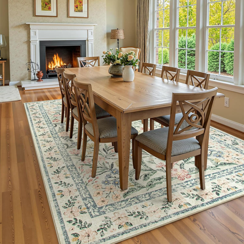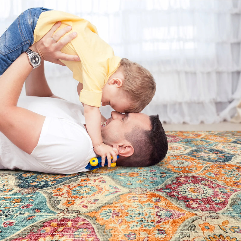 Morebes Area Rugs Boho Nursery Non-Slip Rug , Large Soft Vintage Distressed Floral Carpet for Living Room Home Office Decor