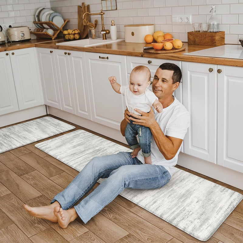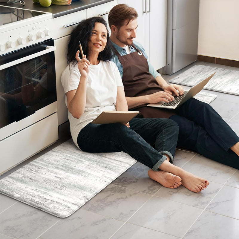 KIMODE Kitchen Mats Kitchen Mats Cushioned Anti Fatigue, Abstract Grey Farmhouse Kitchen Rug, Non Slip Kitchen Mats for Floor, Padded Kitchen Floor Mat for Sink Laundry Desk
