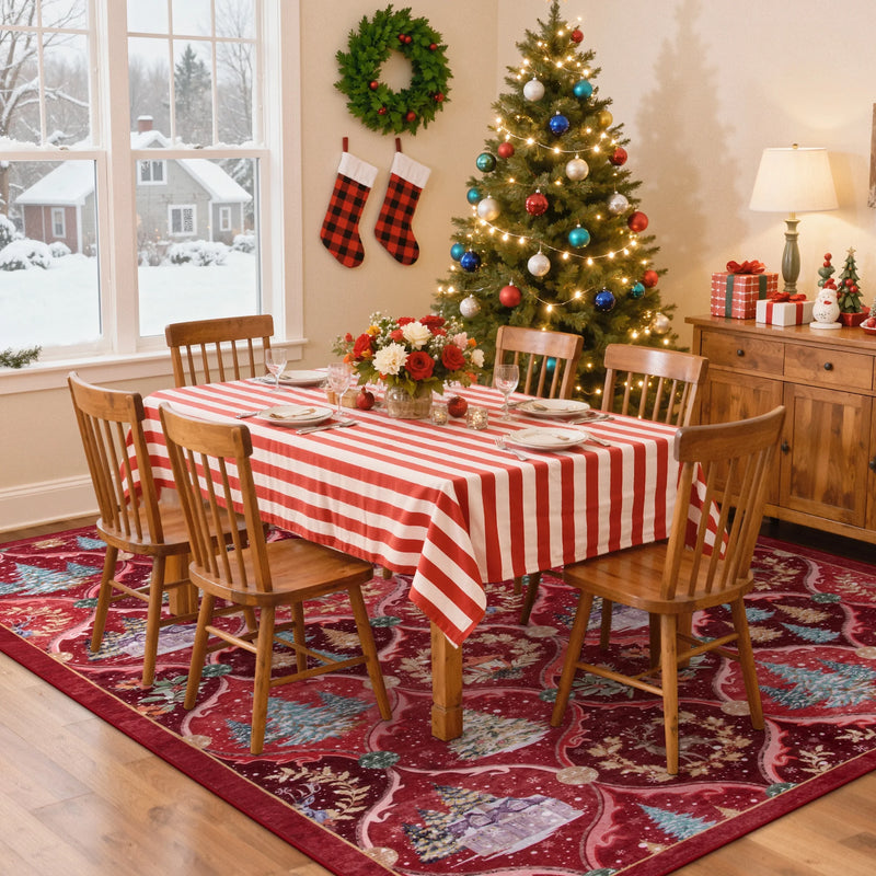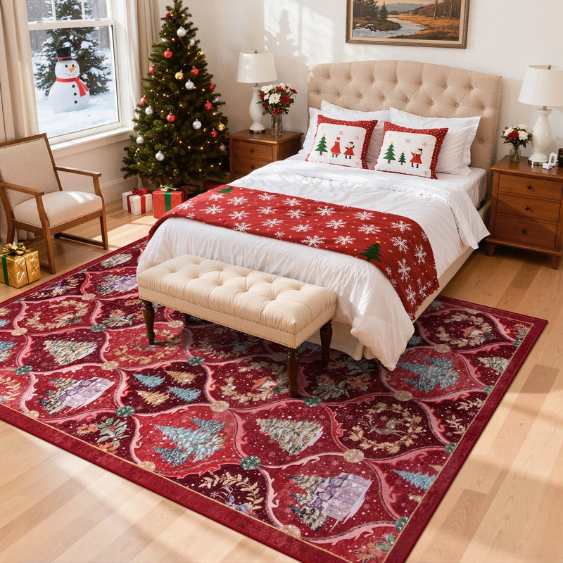 Moynesa Area Rug Christmas Area Rug for Living Room, Xmas Tree Modern Washable Rug, Holiday Decor Geometric Soft Accent Rug for Bedroom Dining Room, Red
