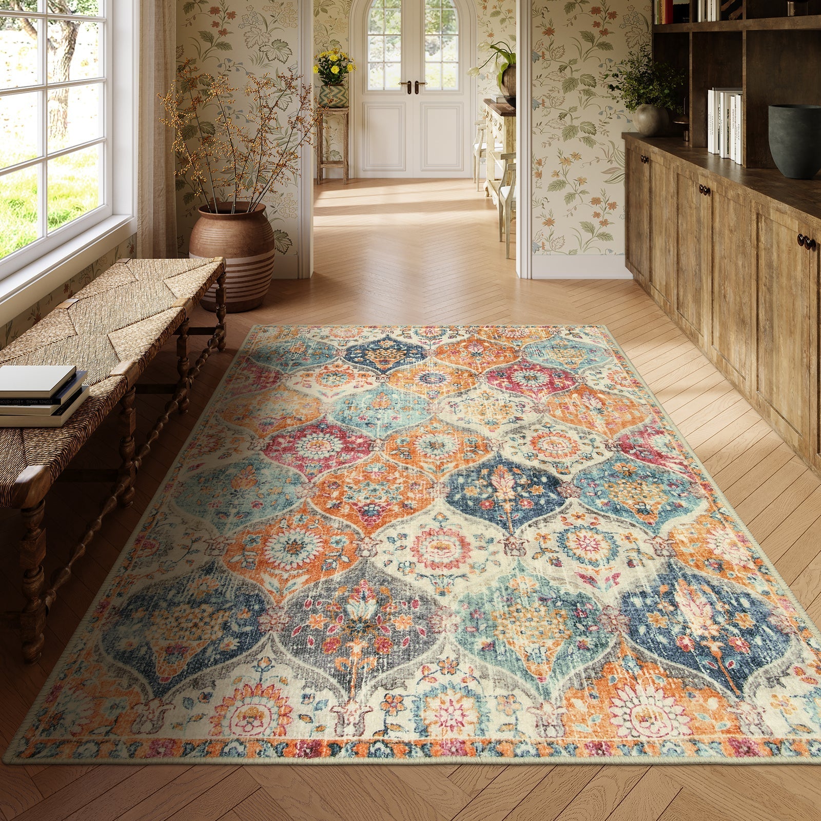 - CLEANING RUGSoft and Designed: This Lahome area rugs has a trendy faded style and a unique floral pattern, vintage tones blend perfectly with your home. This rug is made of faux wool fibers; Easy on the feet-soft as cotton balls; stain-resistant and non-shedding